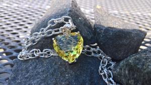 Stort hjärta av citrin med mönstrad kedja, priset avser 1 st.