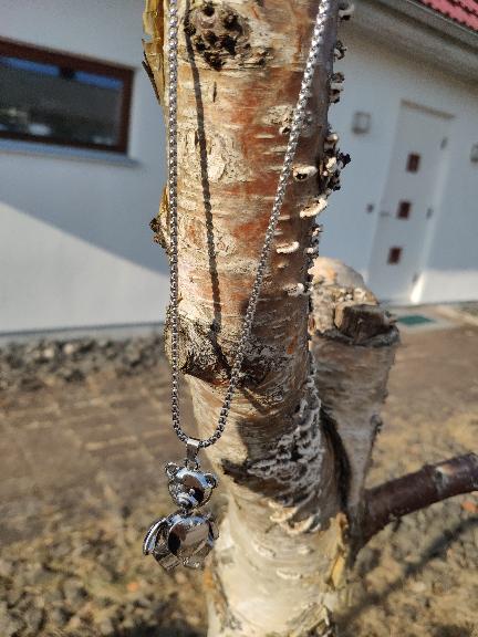 En söt nalle med en lång vacker kedja som är 70 cm lång.