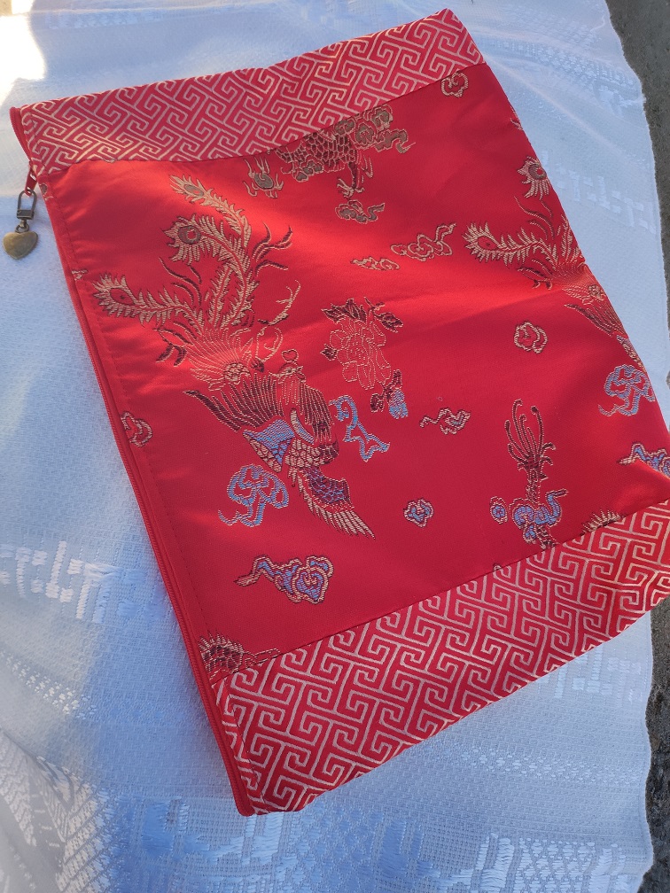 Sydd av mig i ett gammalt kinesiskt tyg i rött med vackert mönster!